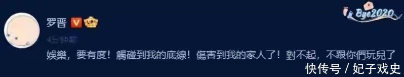 而且也是一点不给剧方面子直接说“娱乐要有度,触碰到我的底线!伤害到我的家人!对不起!不跟你们玩了”,可以看出态度还是非常强硬的。