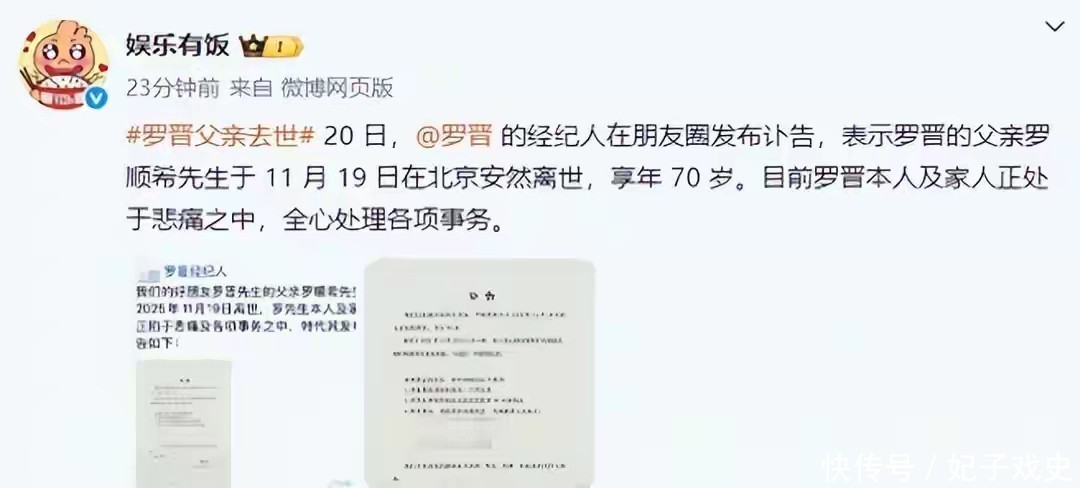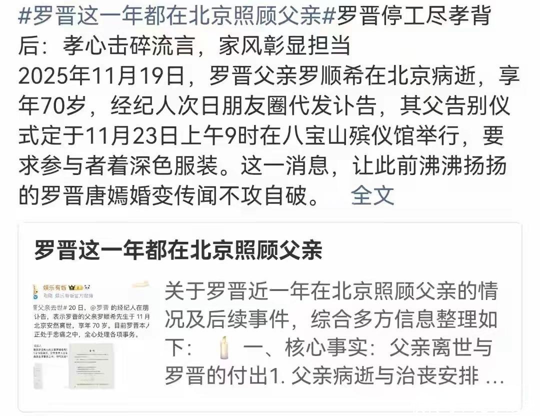 可谁知,突然传出了噩耗,罗晋父亲去世了。